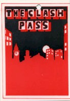the clash pass - tour pass - laminated - green black and white - cartoon cityscape at night - poor condition tour pass -
