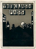 the clash pass - tour pass - stick on - yellow black and white - cartoon cityscape at night - poor condition tour pass -
