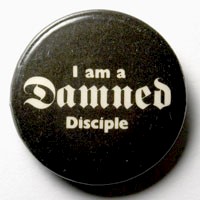 the dammed - badge - I am a damned disciple - white text on black background badge - 1.25" diameter - circular