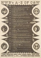 hank wangford - hwb's a-z of c&w - comedy definitions of all letters from a to z half tone images of the band - new steereo single "ghost herd" - available now on 7" & 12" poster -