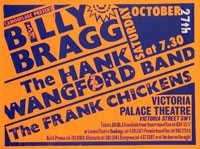 billy bragg - the hank wangford band - the frank chickens - victoria palace theatre, victoria street sw1 - saturday 27th october - 7.30 poster -