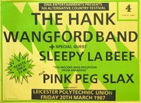 the hank wangford band - + special guests sleepy la beef plus pink peg slax - leicester polytechnic union - Friday 20th march 1987 - tickets £3.99 - as seen on tv channel 4 poster -