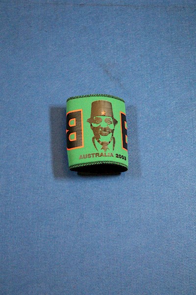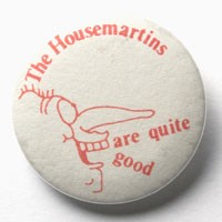 the housemartins are quite good green cartoon character's face with tongue out on left of frame on white background badge - 1" diameter - circular