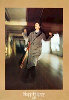 slapp happy - colour portrait of peter blegvad with raincoat on & guitar slung over his back poster -