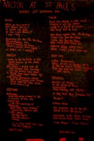 milton at st pauls - ted milton - sunday 23rd sep 1979 red "poetry" text on black background