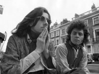 t rex - marc bolan & steve peregrin Took - standing mid shot - hard lighting - tree in background b/w walkerprint -