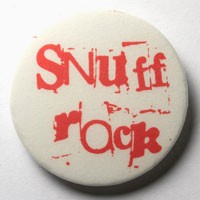 alberto y lost trios paranoias - badge - "snuff rock" in black "punk" style text on white background - larger version badge - 2.25" diameter - circular