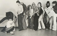 alberto y lost trios paranoias - band queing to do something unspeakable - photo by adrian boot original b/w print -