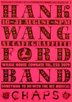 hank wangford band - something to do with the hit musical chaps - 16 to 31 august 8.00pm - at café graffitti - wilkie house cowgate - black on pink poster -