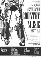 hank wangford - wanted for the city limits alternative country music festival - town & country club - fri april 10th 7.30pm - "wanted poster style" - black on white - tickets £4.99 poster -