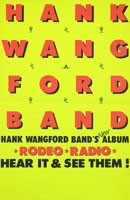 hank wangford - hank wangford band's new album - rodeo radio - here it & see them! - red text on florescent yellow background - ripped poster -