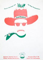 sincere greetings from the hank wangford band - rootin' tootin' santa claus/white christmas - mamma won’t be home for christmas - single out now on cow pie - red and green "cartoon" head image of hank on white background poster -