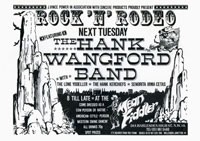 rock 'n' roll rodeo featuring the hank wangford band - with the lone yodeller, the hank kerchiefs, senorita irma cetas - sincere products proudly presents - come dressed as a cow person or native american style person poster -