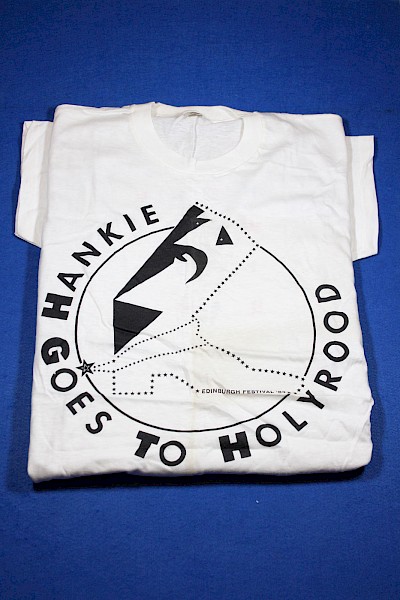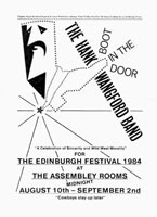 A + B (double sided) hank wangford - flyer A5 double sided - the hank wangford band - boot in the door - for the edinburgh festival 1984 at the assembly rooms - aug 10th to sep 2nd - black on white - other side, promo letter for tickets & merchandice from frank wangford plus tear off reply slip - designed by caramel crunch flyer -