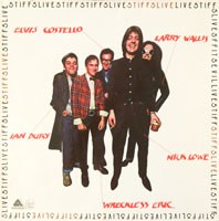 live stiffs - only £2.99 - get 1 - white background with group colour portrait of elvis costello, larry wallis, nick lowe, wreckless eric & ian dury