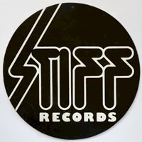 stiff records logo - BARNEY BUBBLE DESIGNS - 12" circle - on card - white text on black with white surround border promo item - 12" diameter
