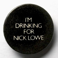 stiff - badge - I'm drinking for nick lowe - white text on black background badge - 1" diameter - circular