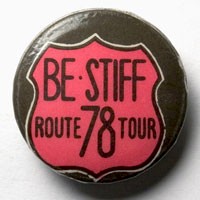stiff - badge - be stiff route 78 tour - black text on pink u.s road route sign on black background badge - 1" diameter - circular