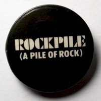 rockpile - badge - "rockpile (a pile of rock)" text in white on black background badge - 1.25" diameter - circular