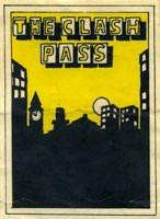 the clash pass - tour pass - stick on - yellow black and white - cartoon cityscape at night - poor condition tour pass -