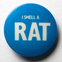 the damned - rat scabies - I smell a rat - white text on blue background - badge - 1" diameter - circular