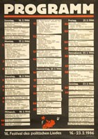 ddr poster - programm (of the) 16th festival des politischen liedes - (programme of the 16th political song festival) - 16th to 23rd feb 1986 - inc. billy bragg and pete seeger slots