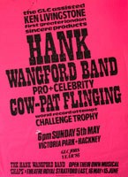 hank wangford band - pro + celebrity cow-pat flinging world record attempt challenge trophy - the glc assisted ken livingstone - first greater london sincere products - 6 pm Sunday 5th may victoria park hackney - glc jobs year '85 poor condition poster -