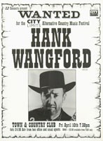 hank wangford - wanted for the city limits alternative country music festival - town & country club - fri april 10th 7.30pm - "wanted poster style" - black on white - tickets £4.99 poster -