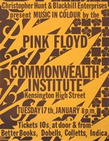 pink floyd - commonwealth institute kensington high street - tue 17th jan 1967 - christopher hunt & blackhill enterprises present music in colour by the pink floyd poster -