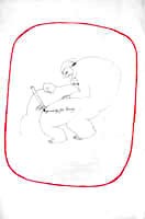 opposition - original artwork for 1" badge - designed by caramel crunch - black on white line drawing of little girl with "opposition" in red text (spelt opposnoiti) around circumference and red bar at angle across design original artwork -