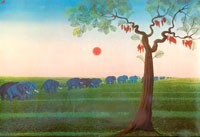 canadian art #1- tree, grass, sky, elephants, laminated print of painting