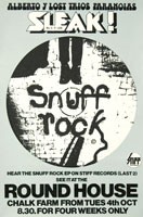 sleak - alberto y lost trios paranoias - snuff rock ep on stiff records - see it at the roundhouse - tues 4th oct - (small version - uses Barney Bubble's Sleeve design)