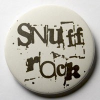 alberto y lost trios paranoias - badge - "snuff rock" in black "punk" style text on white background - larger version badge - 2.25" diameter - circular