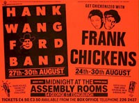 hank wankford & frank chickens - midnight at the assembly rooms - hank wangford band 27 to 30 august - frank chickens 24 to 30 august - 54 george st edingburgh poster -