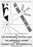 the hank wangford band - a boot in the door - for the edinburgh festival at the assembly rooms - aug 10th to sep 2nd - black on white - designed by caramel crunch poster -