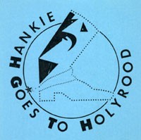 hank wangford - sticker - designed by caramel crunch - hankie goes to holyrood - black text on blue background - with graphic boot & hank face logo sticker - 3" square