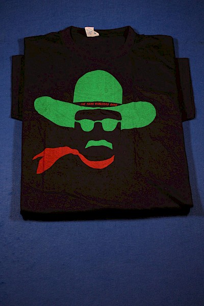 A + B (double sided) hank wangford - invite ticket to TV recording of the a to z of c & w - #37 - for thursday 2nd october - at the mean fiddler harlesden - double sided - details on reverse and graphic wild west style logo on front - b&w invite ticket -