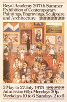 royal academy 207th summer exhibition of contemporary paintings, engravings, sculpture and architecture - 3rd may to 27th july 1975 - montage of images inc. ian dury