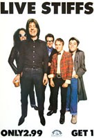live stiffs - only £2.99 - get 1 - white background with group colour portrait of elvis costello, larry wallis, nick lowe, wreckless eric & ian dury