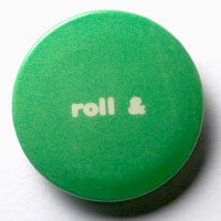 ian dury - badge - BARNEY BUBBLE DESIGN - "roll &" text in white on green background badge - 1" diameter - circular