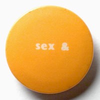 ian dury - badge - BARNEY BUBBLE DESIGNS - "sex &" text in white on orange background badge - 1" diameter - circular