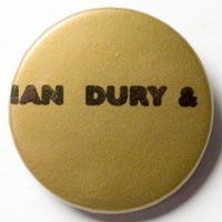 ian dury - badge - "ian dury &" in black text on gold background - BARNEY BUBBLE DESIGNS badge - 1" diameter - circular