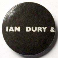 ian dury - badge - "ian dury &" in white text on black background - BARNEY BUBBLE DESIGNS badge - 1" diameter - circular