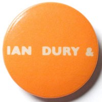 ian dury - badge - "ian dury &" in white text on orange background - BARNEY BUBBLE DESIGNS badge - 1" diameter - circular