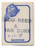 ian dury + lou reed - tour pass - stick on backstage pass - beginnings - 4-13-78 tour pass -