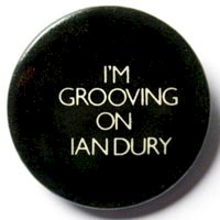 ian dury - badge - "I'm grooving on ian dury" in white text on black background - BARNEY BUBBLE DESIGNS badge - 1" diameter - circular