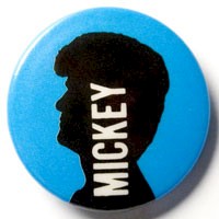 ian dury - badge - "micky" (Gallagher?) in white text on black head silhouette on blue background badge - 1" diameter - circular